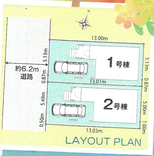 | 接道状況 | 西側6.2m公道 | 延床面積 | 108.06㎡・110.54㎡ |